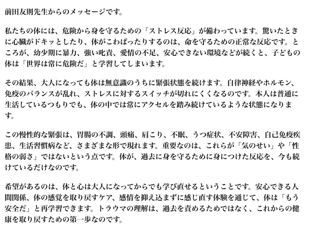 心のデトックス(前田塾) 2026年1月25日 最終更新日時 : 2026年1月25日 syokuiku-f 「体のデトックスは意識している方が多いですが、 実は”心”にもデトックスが必要なのをご存じですか?!」